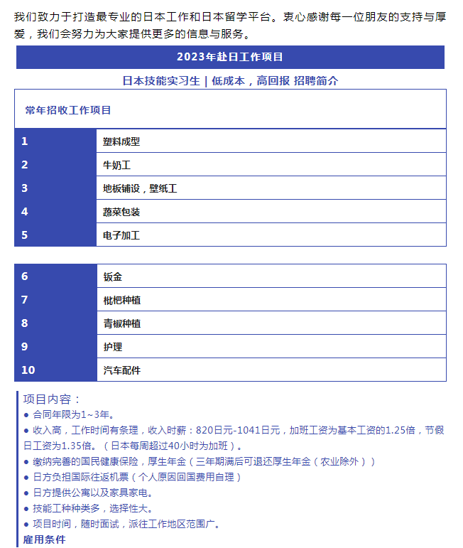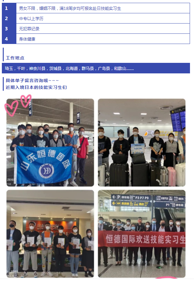 【恒德國際】赴日工作項目